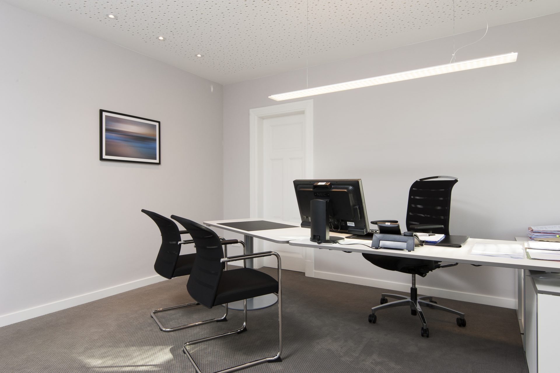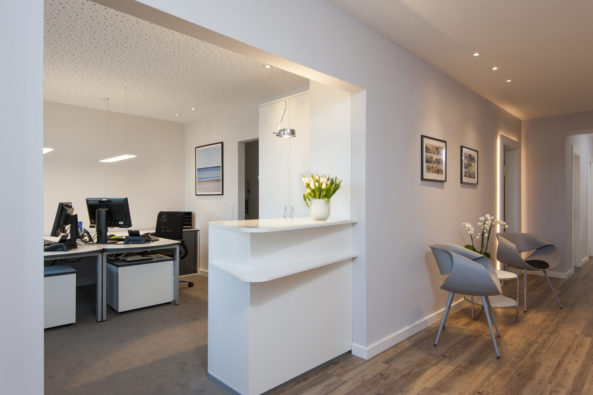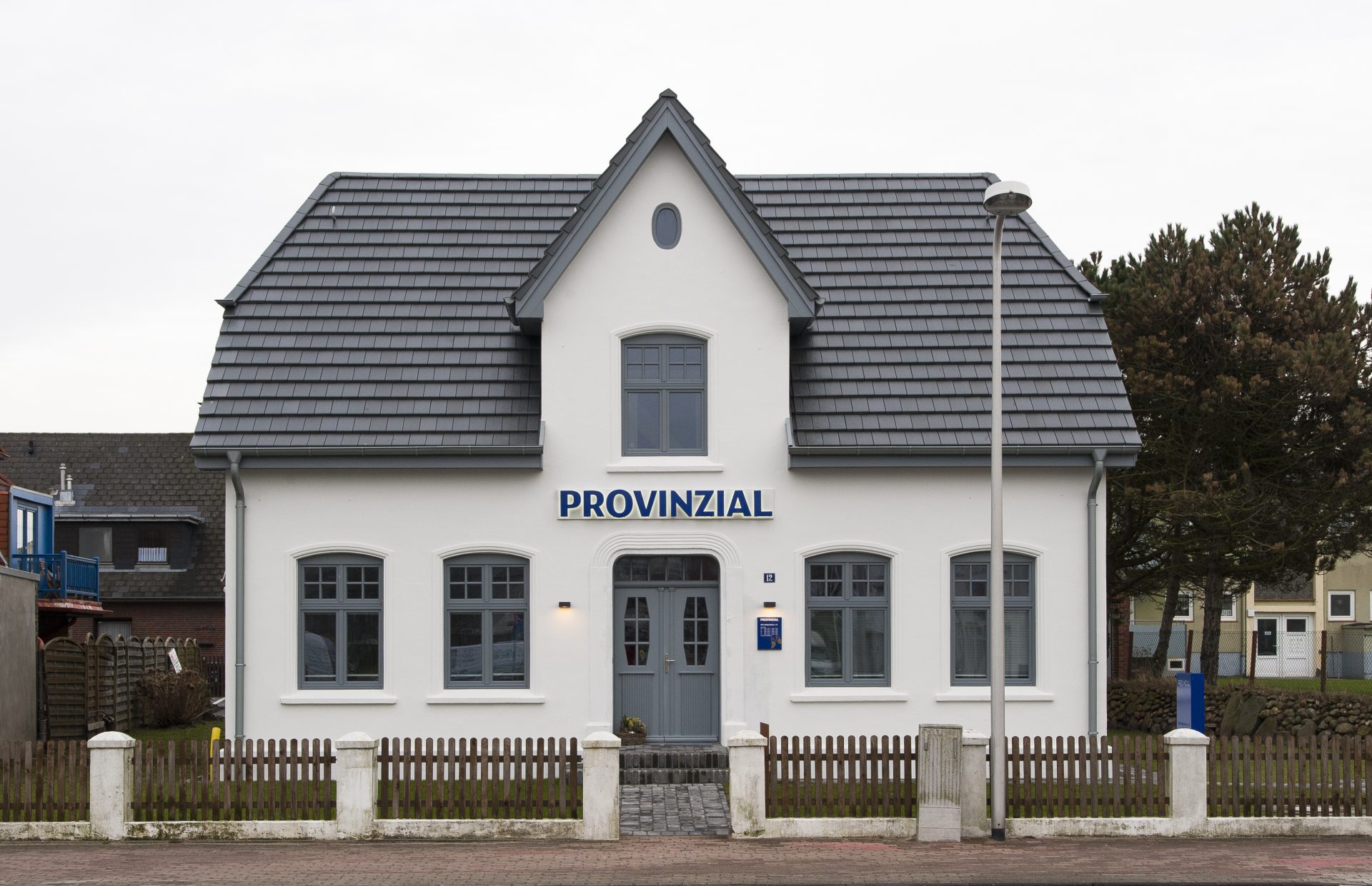 Ein historisches Gebäude wird saniert und mit einem modernem Neubau erweitert. Im Erdgeschoss befindet sich das Büro, im Obergeschoss eine Wohnung.