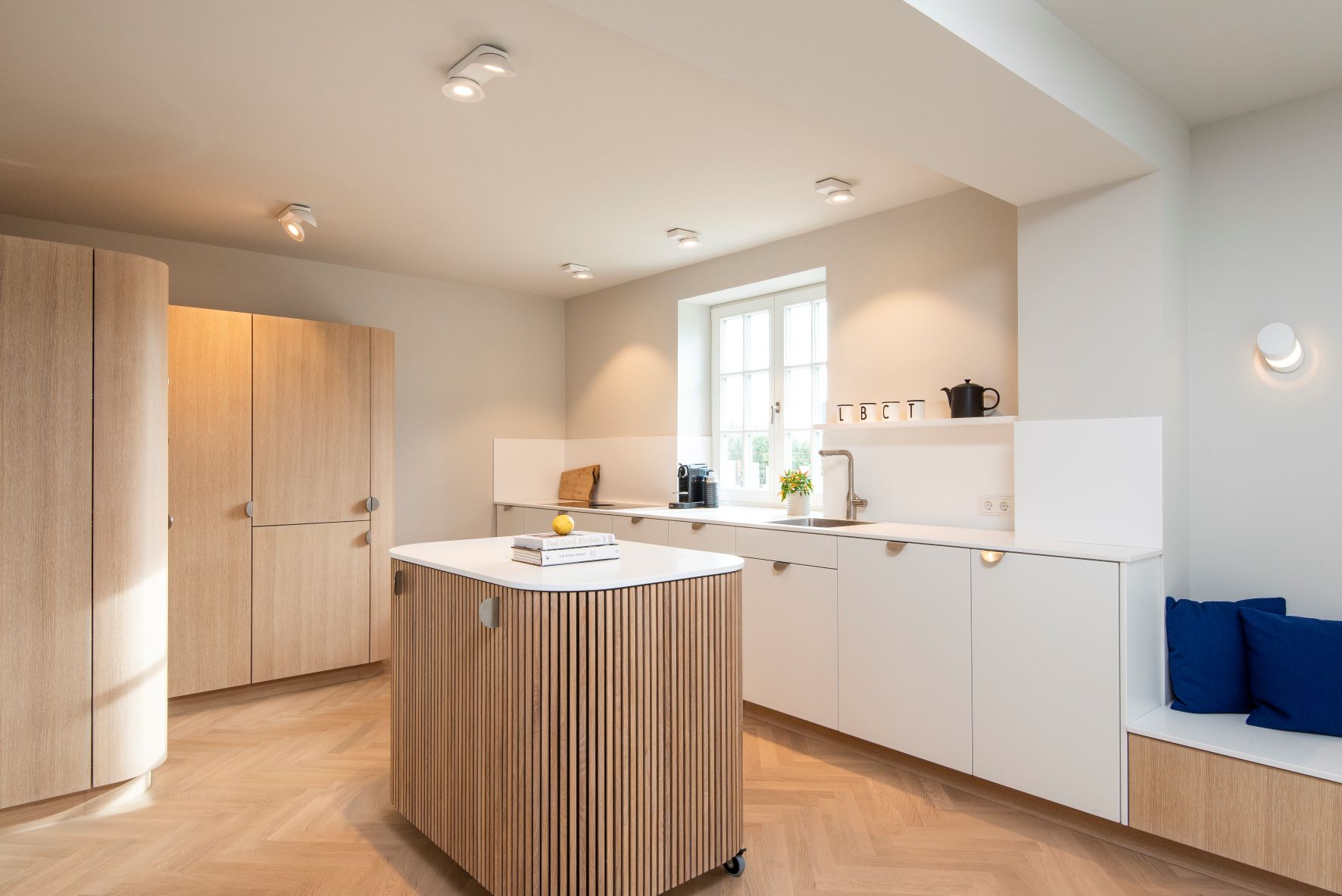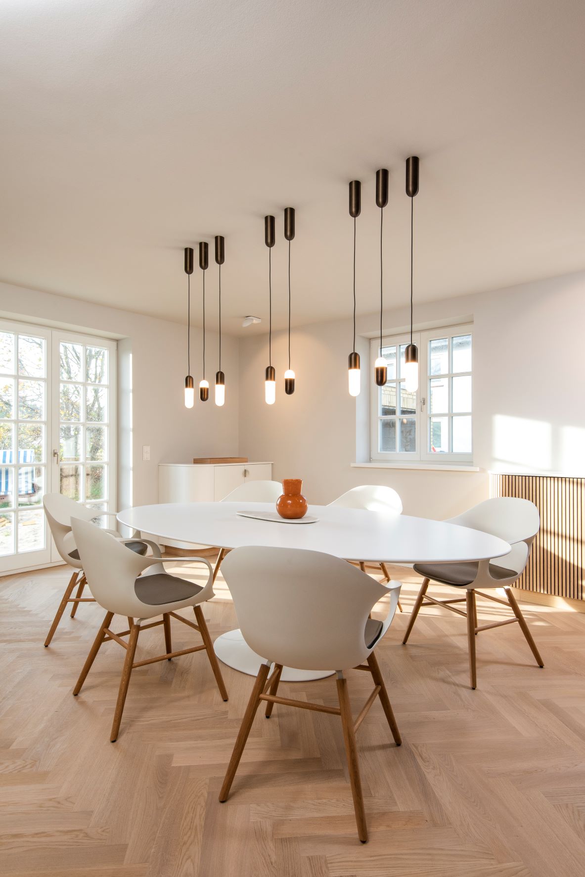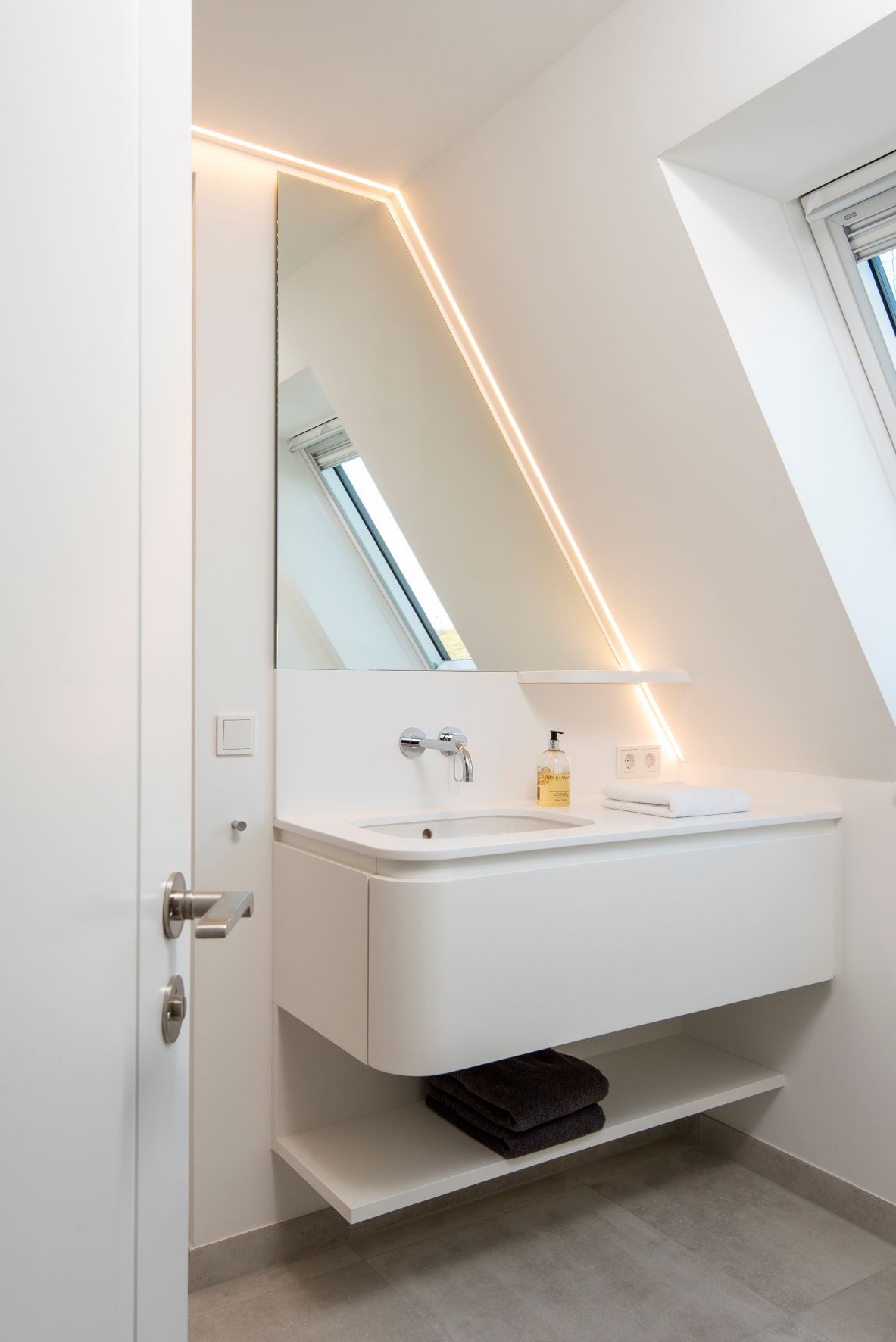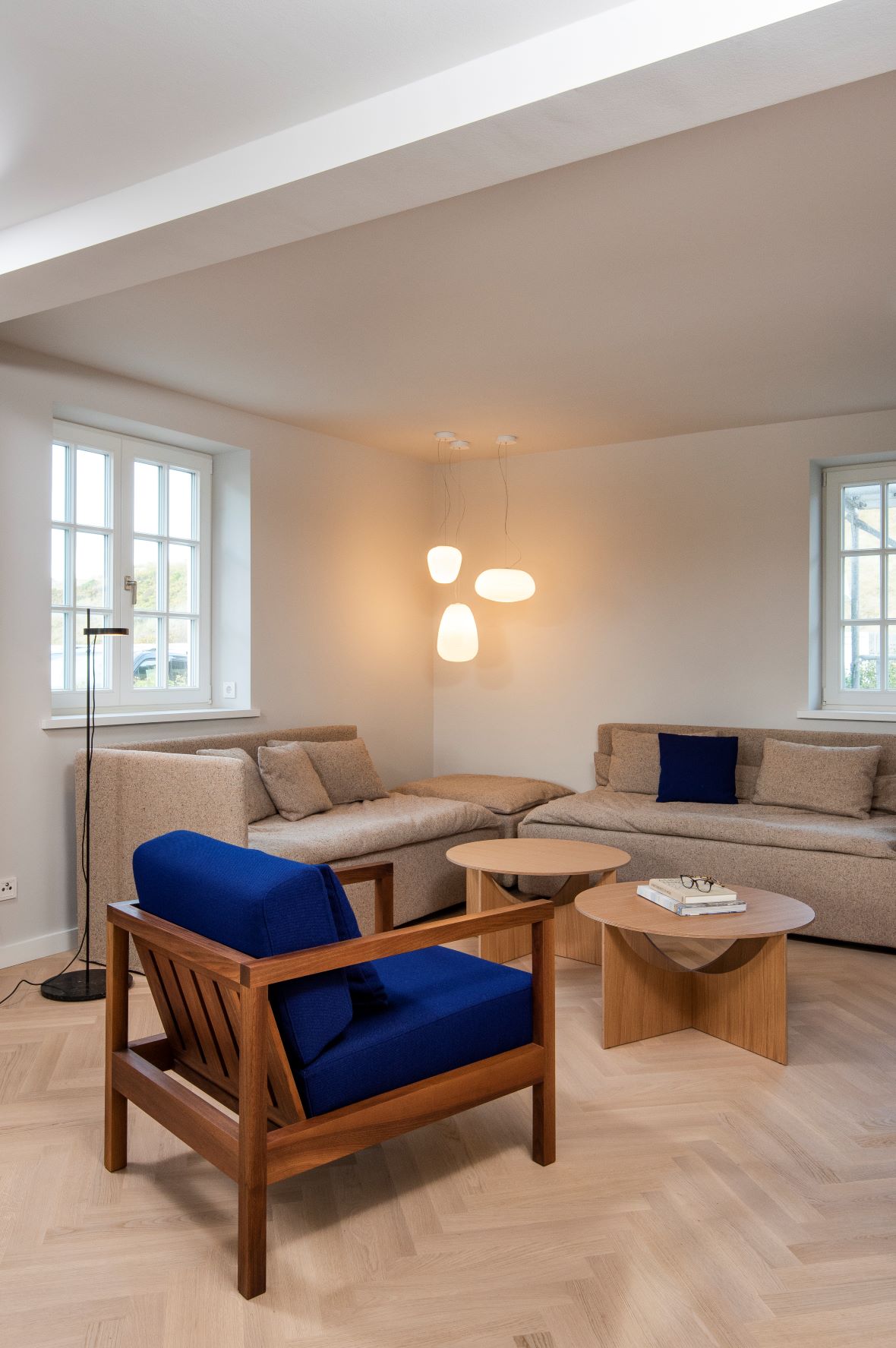 Ein Siedlungshaus aus der Mitte des zwanzigsten Jahrhunderts. Entstanden ist ein modernes Haus. Die Kleinteiligkeit und die dunklen Räume der 50er Jahre sind komplett aufgelöst. Die sehr hochwertige Innenarchitektur erinnert ein klein wenig an den Charme eines 50er Jahre Wohnwagens. Im positivsten Sinne! Ein Ferienhaus zum Wohlfühlen.